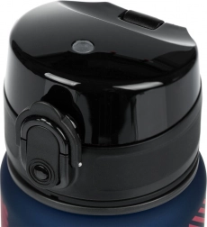Capacul cu buton și siguranță se manevrează ușor cu o singură mână și previne în mod fiabil scurgerea accidentală a lichidului în rucsac.