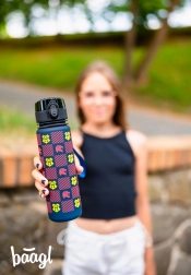 Sticlă de băut BAAGL din tritan cu motiv Harry Potter – Gryffindor, cu volum de 500 ml, ideală pentru școală, excursii și sport. Are capac etanș cu sistem de blocare, site pentru fructe sau gheață, curea pentru transport și este fabricată din tritan sigur, fără BPA, rezistent și pentru băuturi fierbinți.