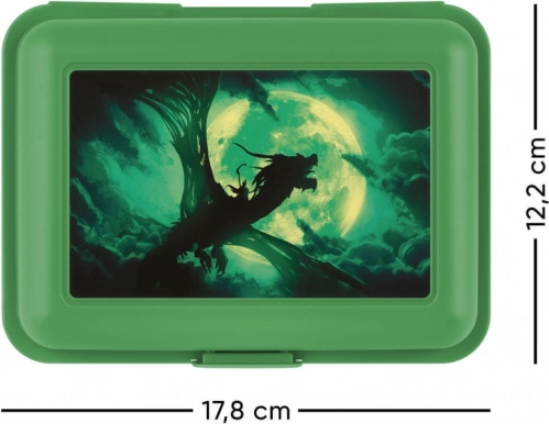 Această cutie de prânz practică este soluția ideală pentru depozitarea zilnică a mâncărurilor dumneavoastră preferate. Cu un design stilizat cu dragon zburând în fața lunii pline, nu doar că păstrează mâncarea proaspătă, ci impresionează și prin aspectul său original. Închiderea ușoară cu un singur lacăt și despărțitorul interior asigură că fiecare bucată de mâncare rămâne pe locul său.