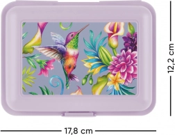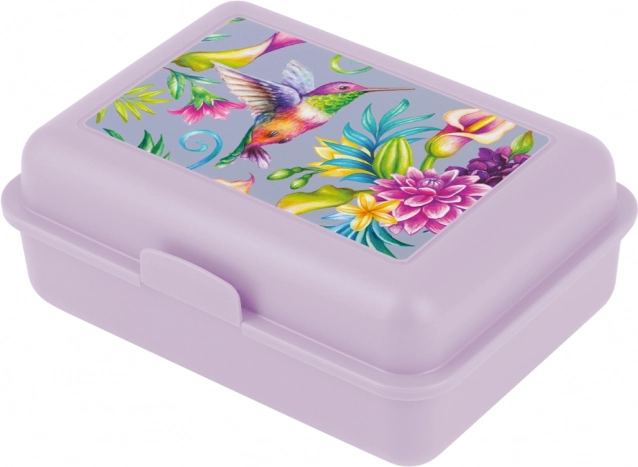 Cutia perfectă de prânz pentru toți cei care doresc să își transporte prânzul sau gustarea într-un stil elegant și practic. Această cutie are o construcție robustă din plastic în frumoasa nuanță mov, decorată cu un motiv estetic de Colibri și flori, care atrage atenția de la prima vedere.