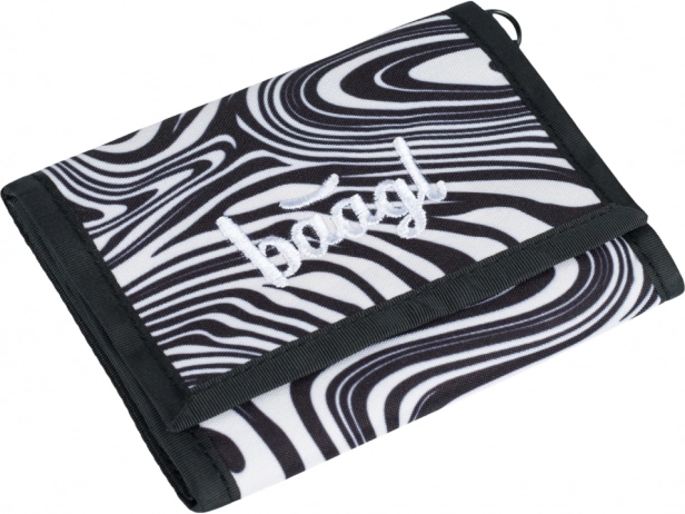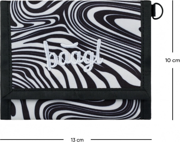 Acest portofel BAAGL oferă o combinație unică de stil și funcționalitate. Datorită materialului rezistent și durabil este ideal pentru școală și utilizare zilnică. Este decorat cu un model abstract alb-negru și un text brodat delicat pe partea frontală.