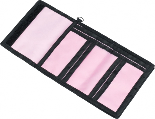 Portofelul este dotat cu un ochi pentru fixarea pe o carabinieră, ceea ce permite atașarea ușoară de exemplu la inelul pentru chei sau la rucsac. Oferă suficient spațiu pentru organizarea cardurilor, numerarului și obiectelor personale mici, făcându-l tovarășul perfect pentru școală și oraș.