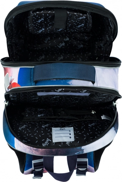 Pentru utilizarea zilnică sunt esențiale organizarea și durabilitatea. Două compartimente spațioase ajută la distribuirea uniformă a greutății, în compartimentul frontal se află un organizer cu buzunărel pentru mărunțișuri ori telefon și o carabină pentru chei. Buzunarele laterale din plasă țin în siguranță sticla de apă, fundul rigid menține servieta stabilă în poziție verticală, iar elementele reflectorizante sporesc vizibilitatea copilului în drum spre școală. Materialul rezistent impermeabil protejează conținutul pe orice vreme.