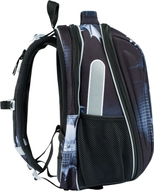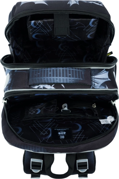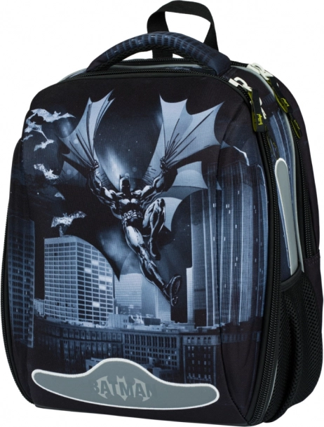 Ghiozdan școlar ușor și stabil pentru elevii din clasa I și școlarii mici, cu motivul BATMAN Dark City. Oferă un corp rigid întărit pentru protecția maximă a caietelor, organizare cu două compartimente pentru transport ordonat, spate respirabil cu sistem Air Ergo Adjustable și elemente reflectorizante pentru siguranță. Greutate redusă de doar 1000 g, volum 23 l și organizator practic pentru tot ce este necesar la școală.