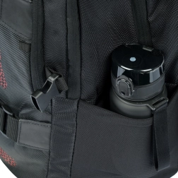 Spatele modelat ergonomic este completat de bretele de umăr, piept și laterale de compresie, complet ajustabile pentru o potrivire perfectă pe corp. Buzunarele laterale din material rezistent se potrivesc cu majoritatea sticlelor de apă, iar elementele reflectorizante sporesc siguranța pe timp de amurg. Bretelele frontale pentru prinderea skateboardului fac din acest rucsac alegerea ideală pentru elevii activi.