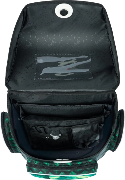 Închiderea magnetică Fidlock se deschide printr-o simplă rotire și se închide singură, astfel încât copiii folosesc ghiozdanul ușor și în siguranță. La interior găsiți organizator pentru distribuție echilibrată a greutății și buzunar transparent cu orar pentru o orientare mai bună. Buzunarul frontal izolat protejează gustarea, iar cele două buzunare laterale sunt ideale pentru sticla de apă.