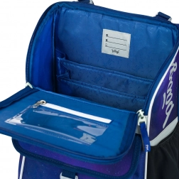 Noul mecanism de deschidere rabatabilă permite copiilor acces rapid la rechizite direct din bancă. La interior se găsește buzunar transparent pentru orar și un organizator bine gândit, cu elastic pentru fixarea caietelor și manualelor. Buzunarele laterale din plasă rezistentă pot găzdui o sticlă, iar buzunarul frontal spațios, izolat, cu cataramă protejează gustarea.
