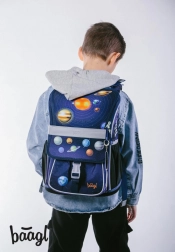Ghiozdanul școlar Baagl Zippy Planete este conceput pentru confort și purtare sănătoasă încă din clasa I. Datorită sistemului de spate culisant ERGO ADJUSTABLE SYSTEM, poziția bretelelor se adaptează ușor înălțimii copilului. Spatele ergonomic și bretelele de umăr, piept și compresie laterală complet reglabile asigură așezare ideală și distribuție uniformă a greutății.