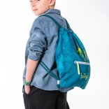 Pe partea frontală găsiți un buzunar practic cu fermoar, în care puteți pune chei, card, șervețele sau alte obiecte mici. Șnururile rezistente de strângere servesc drept bretele pentru umeri, astfel încât săculețul se poartă confortabil pe spate. Carabina permite prinderea rapidă de ghiozdan sau rucsac.