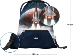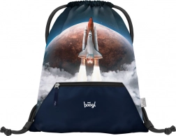Săculețul pentru încălțăminte Space Shuttle este realizat din material durabil și lavabil, are un buzunărel practic cu fermoar și carabină pentru atașare, de exemplu, la ghiozdan. Se poartă confortabil pe spate datorită șnururilor solide.