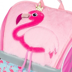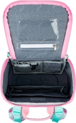 Ghiozdan cu sistem de spate reglabil și cu deschidere rabatabilă pentru acces ușor la rechizite.