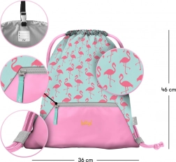 Acest săculeț de spate de la BAAGL nu este doar stilat, ci și foarte practic. Dispune de un design sănătos cu motiv flamingo și elemente practice: