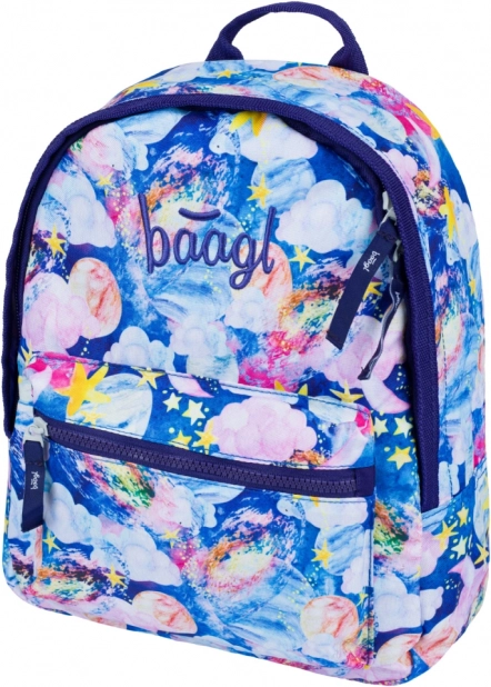 Descoperiți rucsacul preșcolar BAAGL, stilat, cu imprimeu cosmic plin de stele, planete și nori colorați. Datorită construcției ușoare și ergonomiei bine gândite, se poartă confortabil chiar și de către cei mai mici copii.