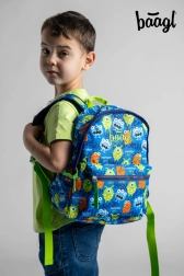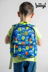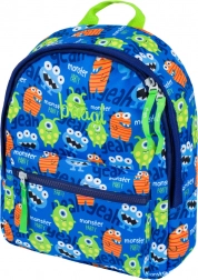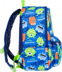 Motivul vesel cu „monștri” în culori intense îi distrează pe copii și îi motivează să își poarte singuri rucsăcelul la grădiniță și în excursii.