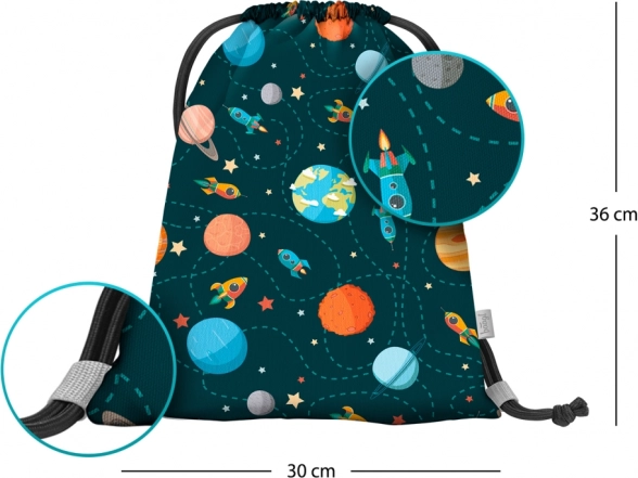 Săculețul preșcolar Baagl cu motivul Planete este ușor și practic, ideal pentru încălțăminte și mici obiecte pentru activități și timpul liber. Fabricat din material rezistent și lavabil, cu închidere prin șnururi solide, care permit totodată purtarea confortabilă pe spate.