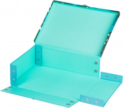 Datorită capselor, servieta se desface oricând pentru economisirea spațiului și se pliază din nou în formă rigidă în doar câteva clipe.