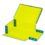 Datorită capselor, servieta se pliază sau se desface în câteva clipe. Economisește spațiu acasă și în dulăpiorul de la școală și rămâne stabilă în utilizare.