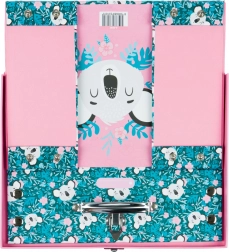 Servieta școlară pliabilă, cu motiv delicat de koala, este ideală pentru materiale de artă, caiete, jucării și mărunțișuri pentru călătorii. Elementele metalice elegante și colțurile ranforsate asigură o durată lungă de viață, în timp ce construcția ușoară din hârtie laminată rezistentă facilitează transportul zilnic.