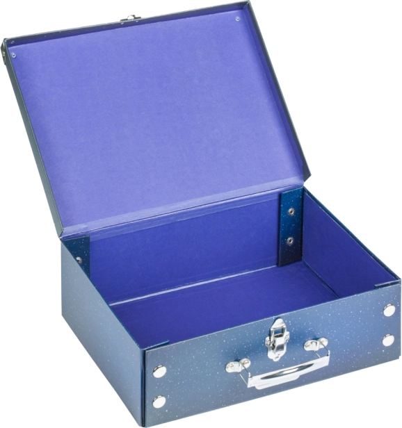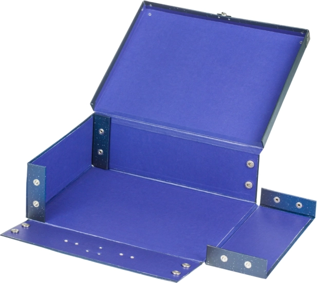 • Valiză pliabilă din hârtie laminată rezistentă, cu colțuri ranforsate metalic.