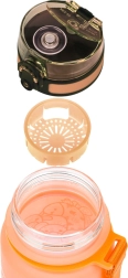 Sticlă ușoară și rezistentă din tritan pentru copii, cu volum de 350 ml. Are capac sigur cu sistem de blocare, design etanș, curea practică pentru purtare și sită pentru fructe sau ceai. Fabricată din tritan certificat, fără BPA, care nu reține mirosuri și este potrivit și pentru băuturi fierbinți.