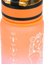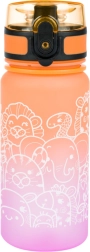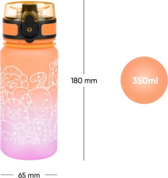 Această sticlă pentru copii din tritan de înaltă calitate este ideală pentru școală, excursii și sport. Datorită capacului blocabil, nu se scurge nicio picătură, iar cureaua practică facilitează transportul. Gradientul atractiv portocaliu-roz cu motive de animale va fi îndrăgit de copii.