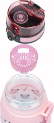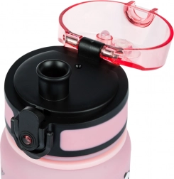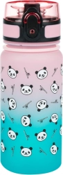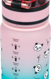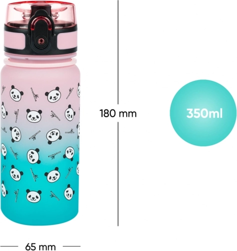 Tritanul certificat nu absoarbe mirosurile, este sigur pentru sănătate (fără BPA, PVC și ftalați) și rezistent la impact. Tranziția colorată roz–turcoaz cu simpatici pande încurajează hidratarea regulată, iar datorită curelei sticla este mereu la îndemână.