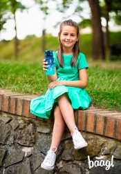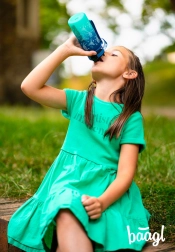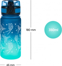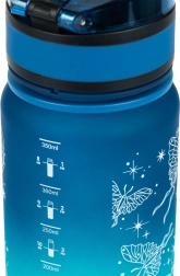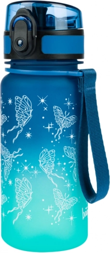 Sticla BAAGL albastră, stilată, cu motiv de fluturi, motivează la un consum regulat de lichide. Corpul din tritan este ușor, rezistent la impact și lipsit de substanțe nocive (BPA, PVC, ftalați). Datorită închiderii sigure a capacului, nu scapă nici măcar o picătură, iar sticla se deschide ușor printr-o singură apăsare.