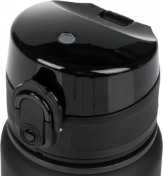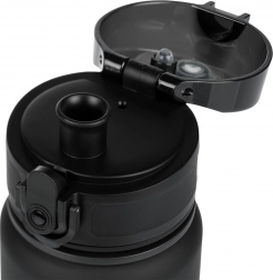 Capacul flip-top cu siguranță previne deschiderea accidentală și etanșează fiabil. Astfel, băutura rămâne în sticlă chiar și în mișcare, în rucsac.