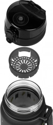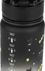 Capacul flip cu siguranță previne deschiderea accidentală în rucsac și asigură băutul comod cu o singură mână. Include sită detașabilă pentru băuturi cu fructe sau ceai; materialul este potrivit și pentru băuturi fierbinți. Curelușa integrată facilitează transportul, astfel sticla este perfectă la școală, la antrenament și în călătorii.