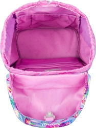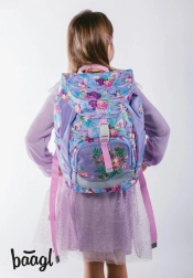Organizarea cu o singură cameră a rucsacului, cu buzunar pentru dosare, facilitează orientarea; buzunarul frontal găzduiește în siguranță cutia de gustare, iar buzunarele laterale cu elastic fixează sticla. Închiderea magnetică este ușor de utilizat pentru orice boboc. Penarul cu două clapete este clar compartimentat și rezistent, gata de umplut. Săculețul din material solid, lavabil, are buzunar inferior cu fermoar, carabină pentru prindere de rucsac și se închide prin șnururi rezistente, confortabil de purtat pe spate.