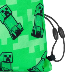 Acest săculeț prezintă un design autentic din jocul Minecraft cu motivul iconicului Creeper, fiind un accesoriu perfect pentru toți fanii jocului.