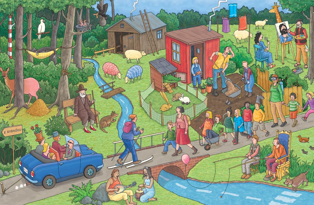 Scenelor pline de culoare, cu numeroase personaje, animale și obiecte, invită la răsfoire repetată și la citit împreună.