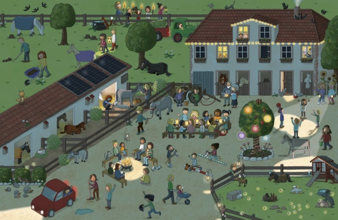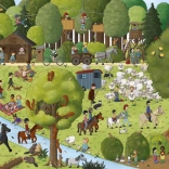 Pe fiecare pagină dublă căutați personajele și animăluțele și urmăriți-le micile povești – de la o zi aglomerată până la o sărbătoare de seară. Antrenează atenția și memoria într-un mod jucăuș.