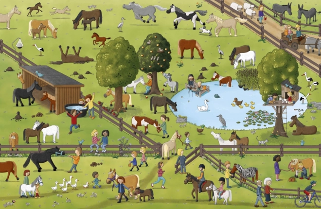 Răsfoiți scene bogat ilustrate din natură, grajduri și pășuni. Fiecare pagină este plină de detalii care îi vor încânta pe copii și le vor stimula curiozitatea despre lumea cailor și a poneilor.