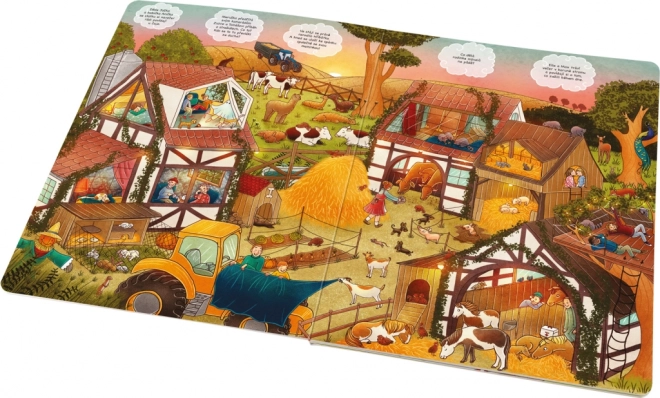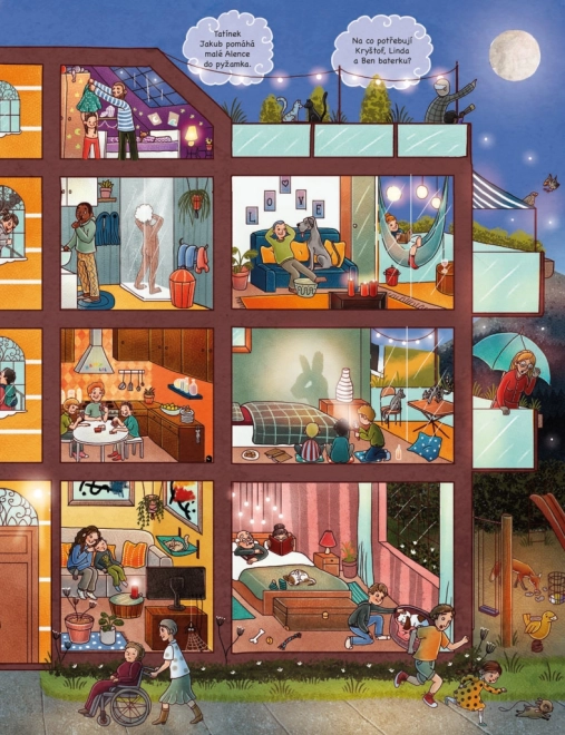 Descoperiți împreună cu copiii ce se întâmplă atunci când lumea din jur adoarme. Paginile pline de ilustrații detaliate deschid porțile către fermă, către orașul aglomerat și către pădurea adâncă – iar lumea jucăriilor care prind viață noaptea nu lipsește. Cartea invită la răsfoire repetată și la povestit împreună.