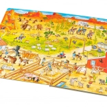 Scenele ilustrate, de la pădure la savană, îi ajută pe copii să înțeleagă unde trăiesc animalele și cum se adaptează mediului lor.