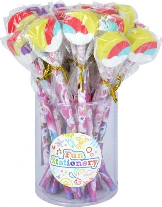 Ilustrațiile vesele cu unicorni motivează la scris și desen și transformă un creion obișnuit într-un accesoriu preferat.