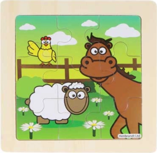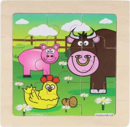 Puzzle pentru copii din lemn. Piesele sunt așezate pe o placă de bază din lemn cu margine frezată pentru o asamblare mai ușoară. Asamblarea puzzle-ului dezvoltă imaginația și susține dezvoltarea motricității. Dimensiunea puzzle-ului asamblat aprox. 9 x 9 cm