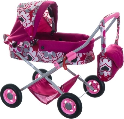 Dotarea include coșul inferior și geanta de cumpărături, unde copiii pot pune biberoane, scutece sau alte accesorii pentru păpuși. Mânerul ergonomic la o înălțime de cca 50 cm se prinde confortabil, iar dimensiunile căruciorului sunt ideale pentru preșcolari.