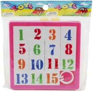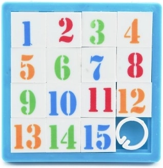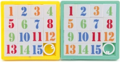 Joc logic îndrăgit pentru călătorii și pentru acasă. Piesele pătrate cu numere sunt așezate într-un cadru solid și, datorită șinelor, pot fi glisate ușor în sus, în jos, la stânga și la dreapta. Scopul este să ordonați numerele de la 1 la 15 – provocare ideală pentru copii și adulți.