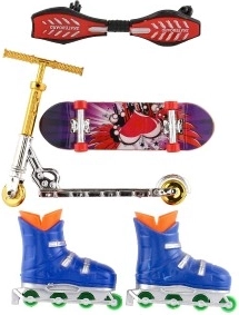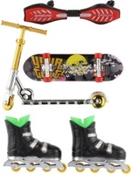 Acest set pentru degete reunește patru sporturi urbane îndrăgite în format mini: skateboard, waveboard, role in-line și trotinetă. Copiii pot încerca trucuri noi, își pot crea propriile trasee și își pot dezvolta creativitatea și îndemânarea. Datorită dimensiunilor compacte, setul încape ușor în rucsac și este perfect pentru distracție oriunde.