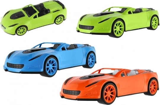 Marea mașină sport din plastic, cu caroserie deschisă, îi va încânta pe micii piloți prin aspectul realist și mersul lin pe mers liber. Potrivită pentru camera copiilor și pentru terenul de joacă – este ușoară, rezistentă și ușor de transportat datorită ambalării în plasă.