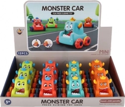 Mecanism intuitiv – apăsați capul monstrulețului, eliberați și mașinuța pornește singură. Grozavă pentru curse rapide și distracție nesfârșită.
