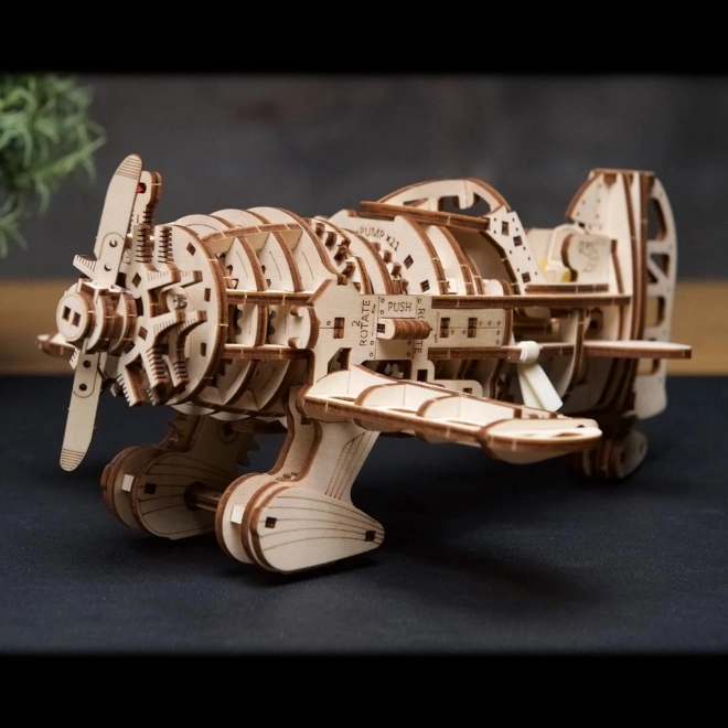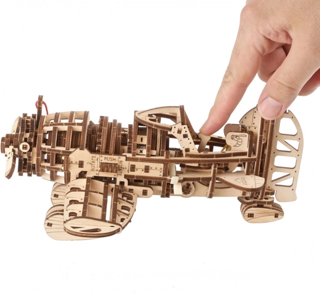 Modelul oferă două moduri de funcționare – verificare pre-zbor cu mișcări ale flapsurilor și cârmei și apoi posibilitatea deplasării, acoperind până la 2,5 metri cu o singură întoarcere. Roata spate ajustabilă permite direcționarea direcției de deplasare. În interior, se deschide un univers de mișcare fascinantă a pistoanelor motorului în stea atât pentru copii, cât și pentru adulți.