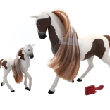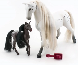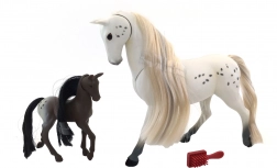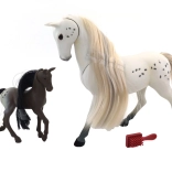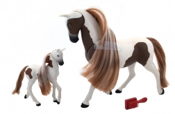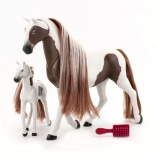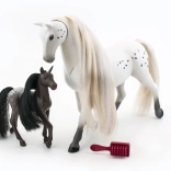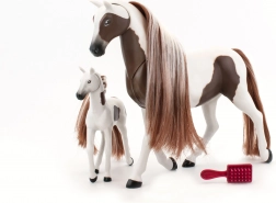 Descoperiți farmecul relației dintre iapa și mânzul său cu acest set adorabil. Pachetul include un măr, un morcov și o perie pentru pieptănarea coamei lor frumoase.