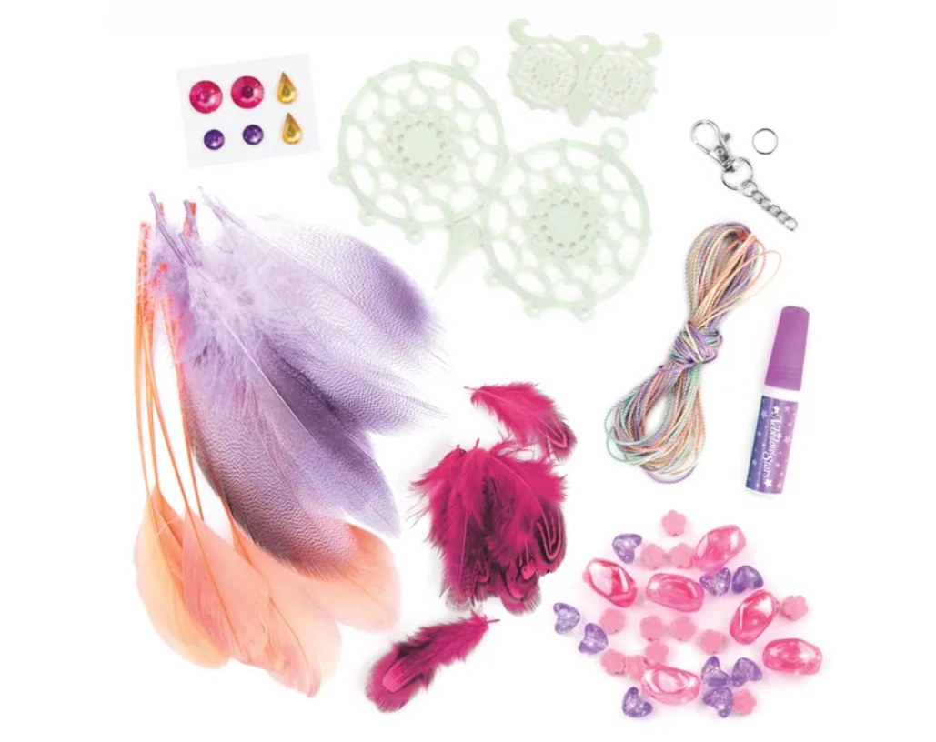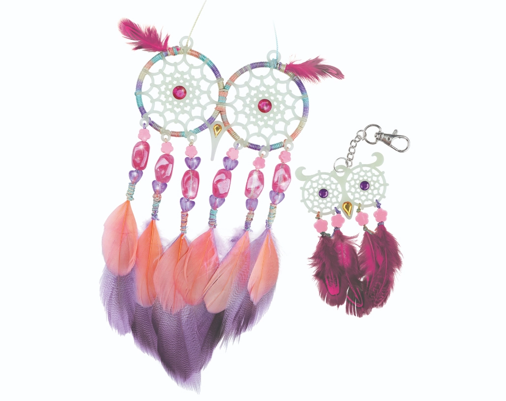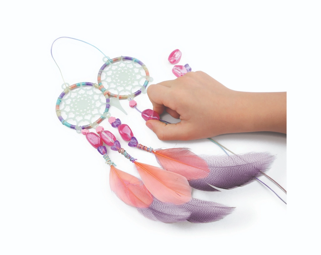 Înnodarea firelor, înșirarea mărgelelor și decorarea cu pene sunt activități simple pe care le pot realiza copiii de la 7 ani. Activitate perfectă pentru după-amiezi sau petreceri pentru copii.