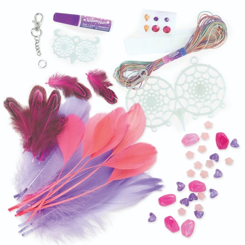 Creează-ți propriile capcane de vise magice de la Nebulous Stars! Acest set creativ le permite copiilor să realizeze 2 capcane de vise cu bufnițe cu efect fosforescent, decorate cu pene, mărgele și autocolante cu pietricele. Activitate grozavă pentru dezvoltarea motricității fine, a creativității și pentru relaxarea de seară.