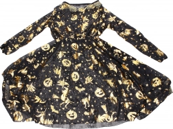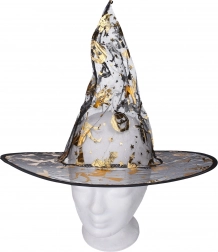 Costum de carnaval elegant de vrăjitoare în culoare aurie include rochie și pălărie și este ideal pentru carnaval, bal mascat și Halloween. Disponibil în mărimile S, M, L.