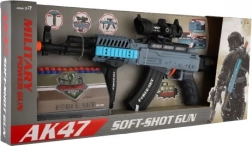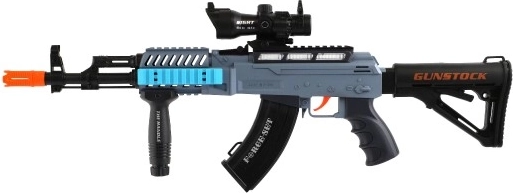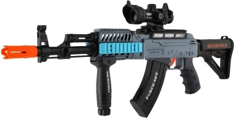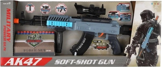 Construcţia uşoară din plastic, încărcătorul detaşabil şi prinderea confortabilă imită puştile moderne, rămânând potrivite pentru copii de la 3 ani.