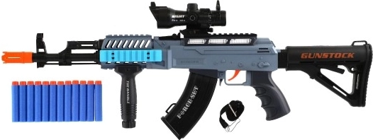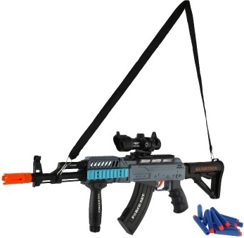 Această puşcă automată pentru copii este ideală pentru jocuri de acţiune sigure, atât în interior, cât şi în aer liber. Datorită gloanţelor din spumă, joaca este blândă cu mediul înconjurător, iar efectele luminoase şi sonore intensifică atmosfera fiecărei misiuni. Jucăria este gata de utilizare imediat după despachetare – bateriile sunt incluse în pachet.